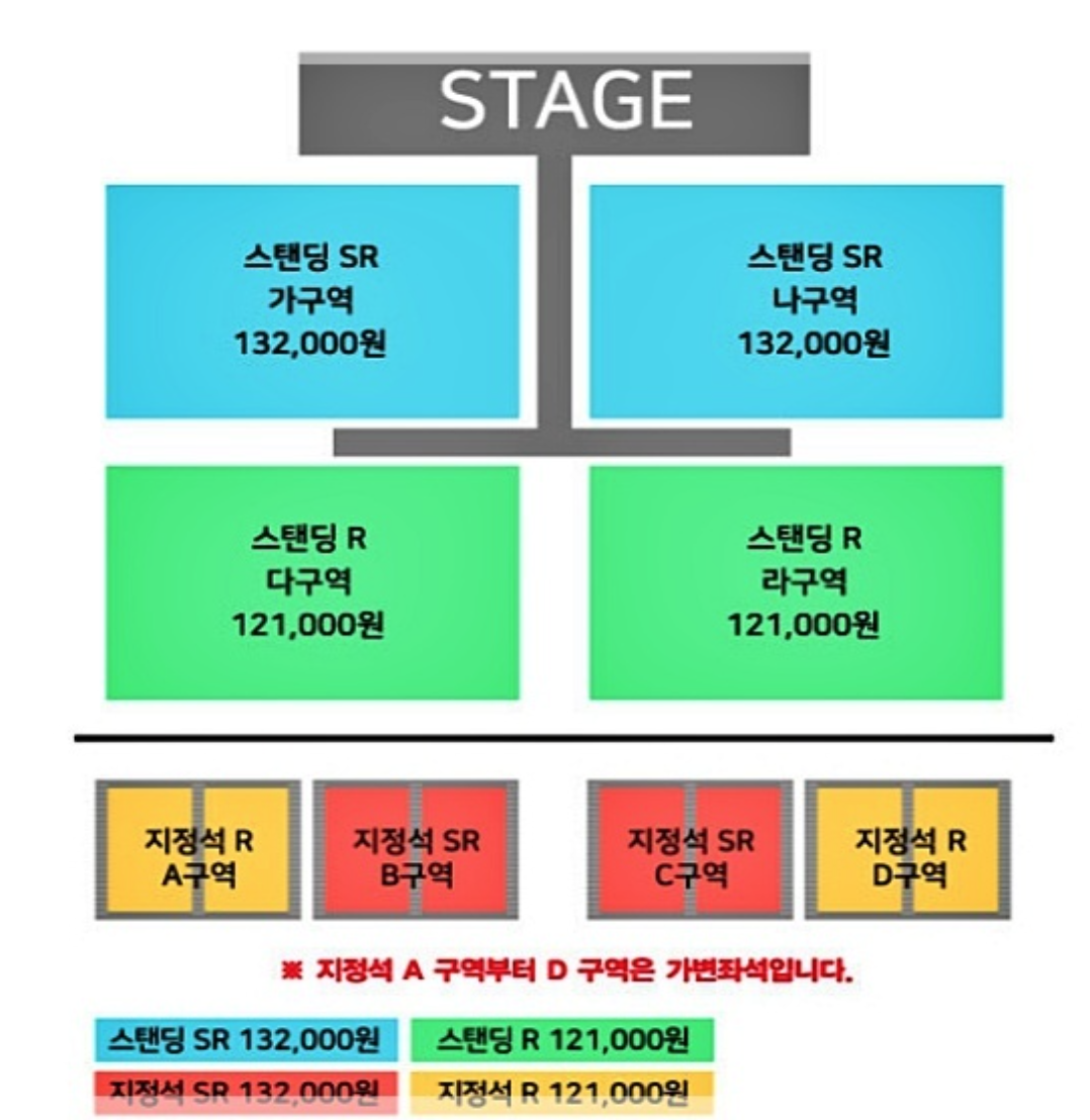 | 스탠딩 SR석 | 132,000원 |